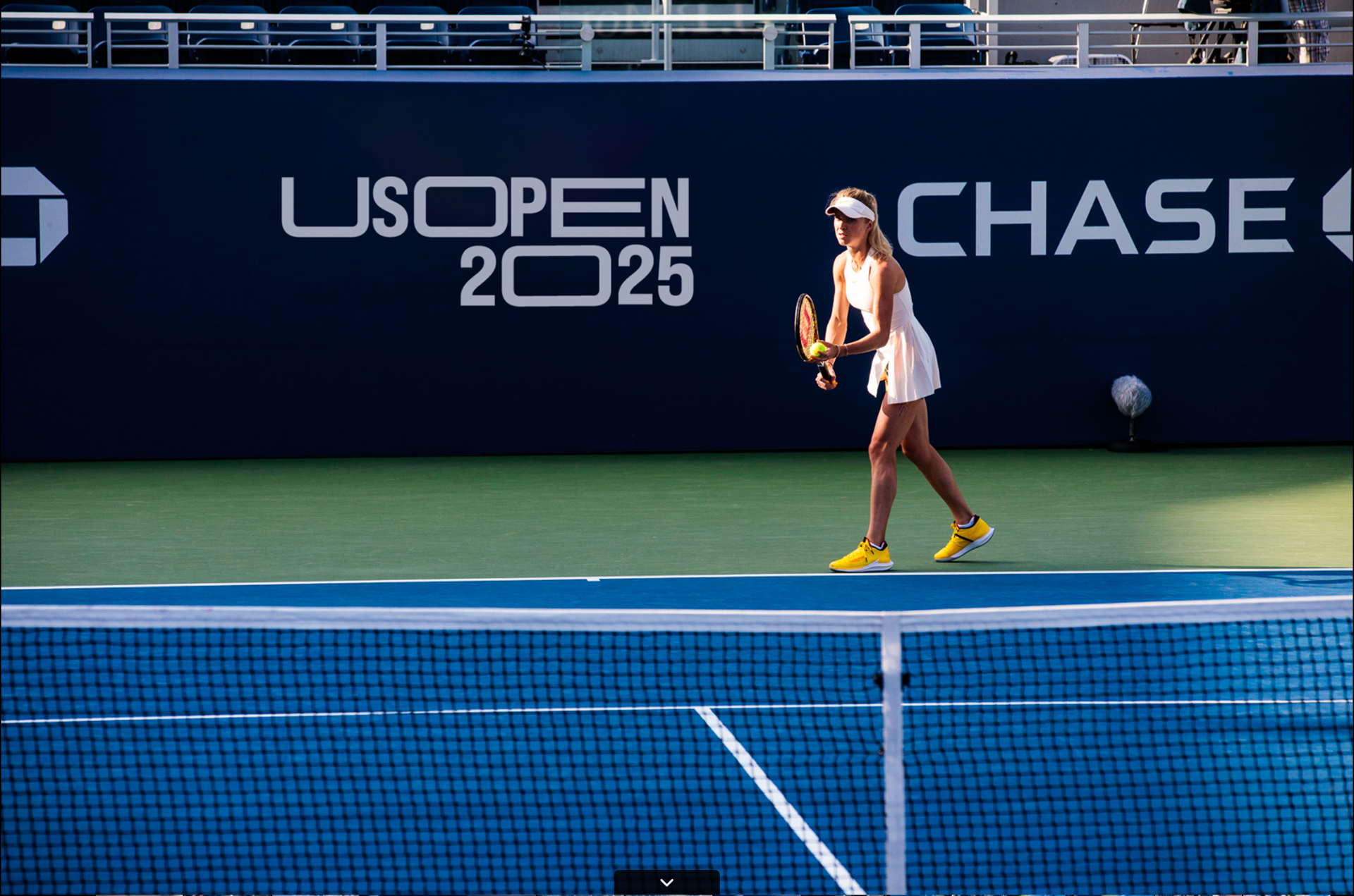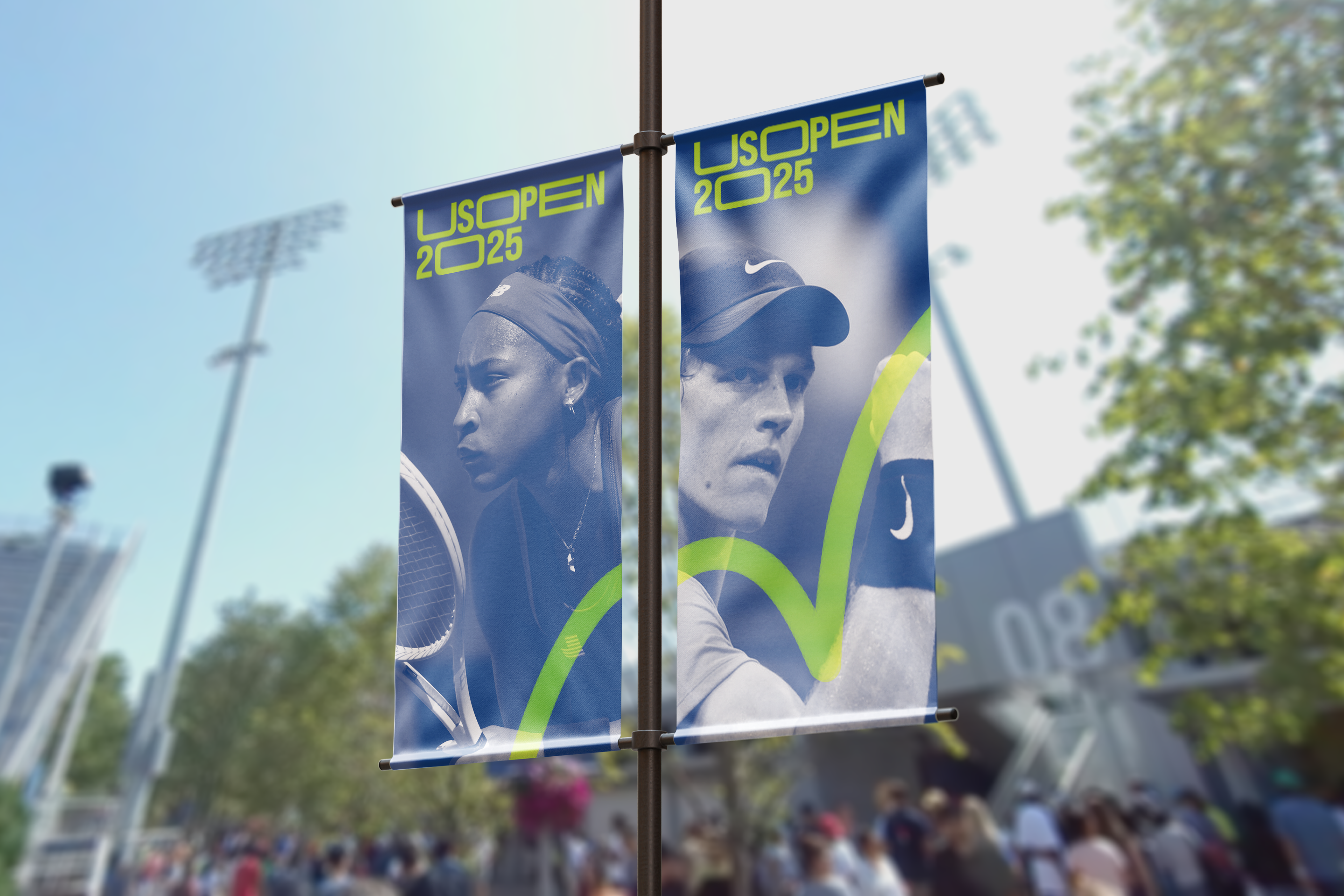 The US Open tennis major tournament 2025 logo system was a bold step in a new direction. As the landscape of tennis is ever evolving the US Open decided to explore a new mark using bold, dynamic typography. The new mark stretches the type to emulate the lines of the court.